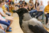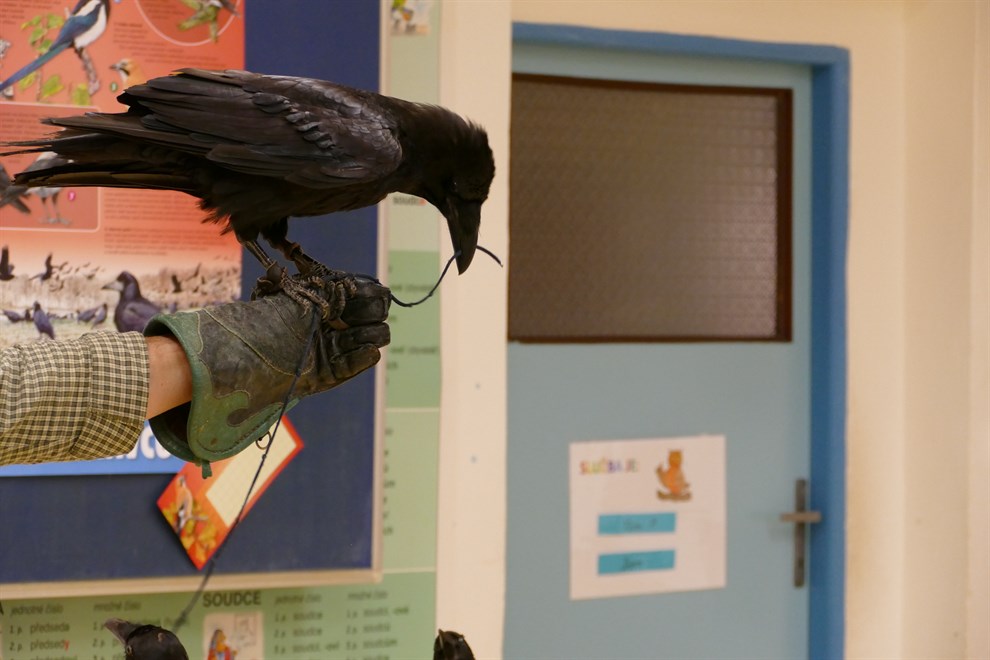 Dříve bývali skoro všichni, snad s výjimkou lesního samotáře ořešníka, drženi v zajetí jako domácí společníci. V současnosti je můžeme vídat ve filmech a pohádkách, kde jsou za moudré rádce nebo naopak děsí svým krákáním. Jejich většinou nenápadně černé zbarvení vede ve společnosti k chybnému rozpoznání jednotlivých druhů, proto si přednáška kladla za cíl představit žákům všech 8 krkavcovitých zástupců, kteří se vyskytují na území naší republiky (konkrétně straka, sojka, vrána černá a šedá, ořešník, kavka, havran a krkavec). Žáci se s krkavcovitými seznámili prostřednictvím živých jedinců, naučných přírodovědných videí, výkladu lektora a vycpaných exponátů. Pro účastníky programu byly připraveny rozvrhy hodin a plakáty s motivem krkavcovitých, aby si mohli nově nabité znalosti i nadále připomínat.