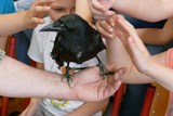 Krkavcovití tvoří nevelkou, avšak velice zajímavou skupinu druhů, kteří vynikají zvídavostí, učenlivostí a výbornou přizpůsobivostí. Dříve bývali skoro všichni, snad s výjimkou lesního samotáře ořešníka, drženi v zajetí jako domácí společníci. V současnosti je můžeme vídat ve filmech a pohádkách, kde jsou za moudré rádce nebo naopak děsí svým krákáním. Jejich většinou nenápadně černé zbarvení vede ve společnosti k chybnému rozpoznání jednotlivých druhů, proto si přednáška kladla za cíl představit žákům všech 8 krkavcovitých zástupců, kteří se vyskytují na území naší republiky (konkrétně straka, sojka, vrána černá a šedá, ořešník, kavka, havran a krkavec). Žáci se s krkavcovitými seznámili prostřednictvím živých jedinců, naučných přírodovědných videí, výkladu lektora a vycpaných exponátů. Pro účastníky programu byly připraveny rozvrhy hodin a plakáty s motivem krkavcovitých, aby si mohli nově nabité znalosti i nadále připomínat.